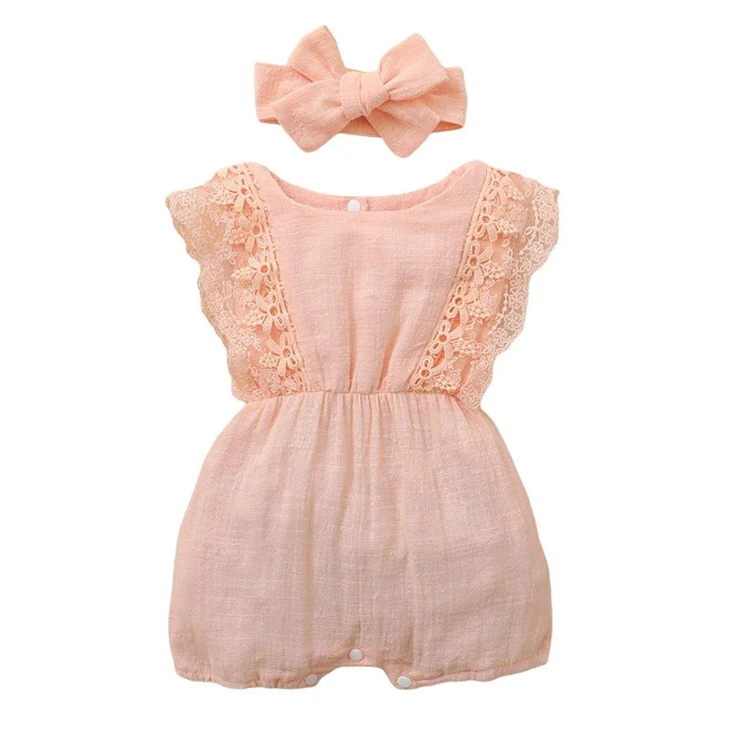 Cute lace romper and headband set. With its unique fashion design, it would be perfect for summer.
