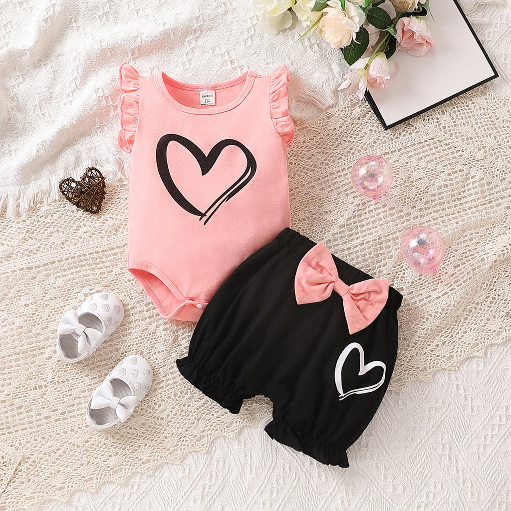 Baby Girls Heart Rompers Short Set
